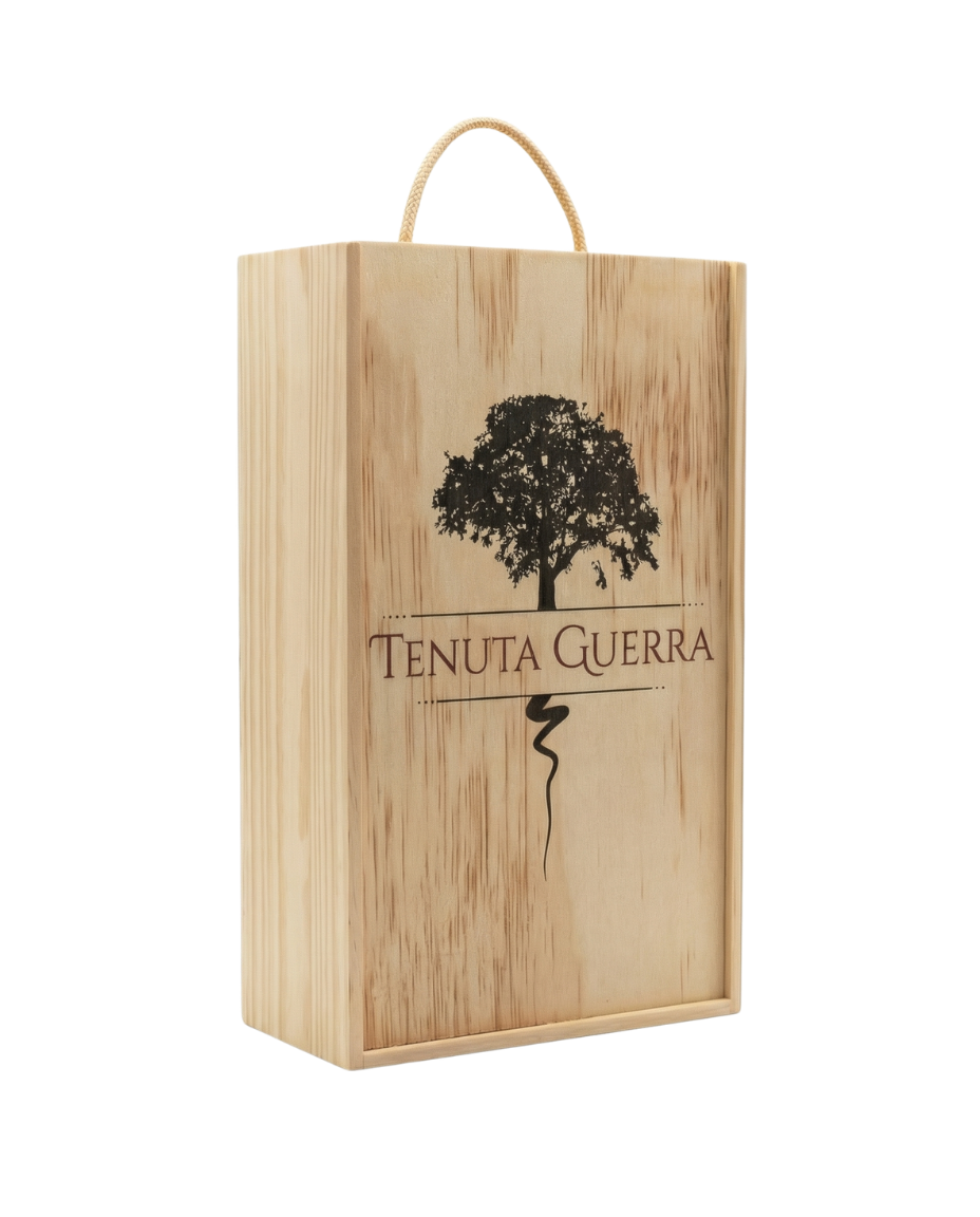 Scatola in legno per 2 bottiglie: elegante, solida e ideale per confezioni regalo Tenuta Guerra.